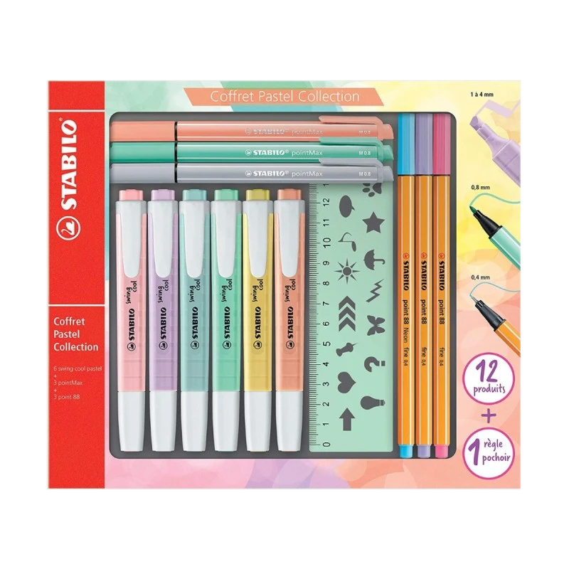 Porta un tocco di eleganza ai tuoi appunti e progetti con lo STABILO Pastel Collection Set. Un cofanetto compatto e raffinato che racchiude 13 strumenti di scrittura e decorazione in tonalità pastello, perfetti per evidenziare, scrivere e disegnare con stile. Ideale per bullet journal, appunti creativi e lettering, questo set unisce precisione e comfort con un design moderno. La confezione curata lo rende anche un regalo originale per chi ama la cancelleria di qualità e vuole dare personalità a ogni pagina.